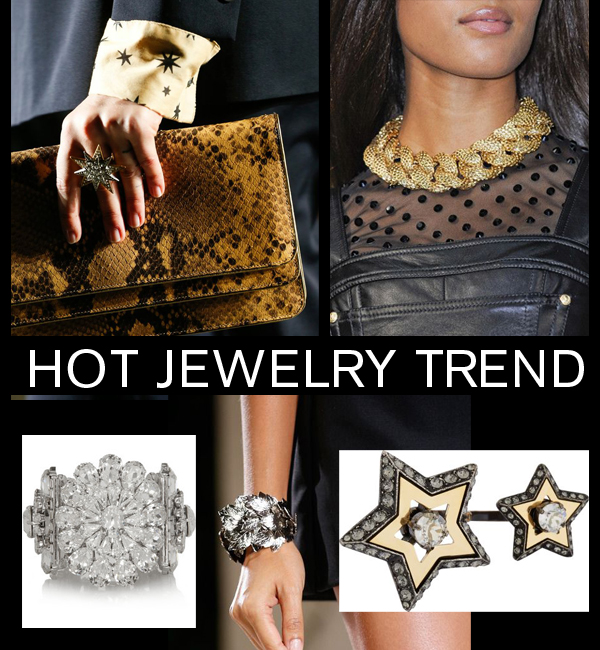Dainty charms and delicate chains be gone! The newest statement jewelry is supersized pearls, uber embellished adornments and heavy duty links.  Karl Lagerfeld showcased mega pearls at Chanel, the ultra chic arm charmers at Balenciaga proved cuffs are a force to be reckoned with and Dries Van Noten and Lanvin featured starry surprises to really drive the point home.  So […]