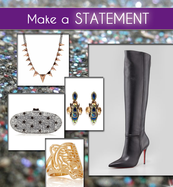 By Susan Linney on 2014/01/11No matter what the occasion, a wow-ing statement piece is always a wardrobe winner. Whether it’s a piece of costume jewelry, an evening clutch, or even a pair of boots, don a standout item and you’ll be the belle of the ball (perhaps as you watch the ball drop!). Here are five of our larger-than-life favorites. 1. Edie Stars […]